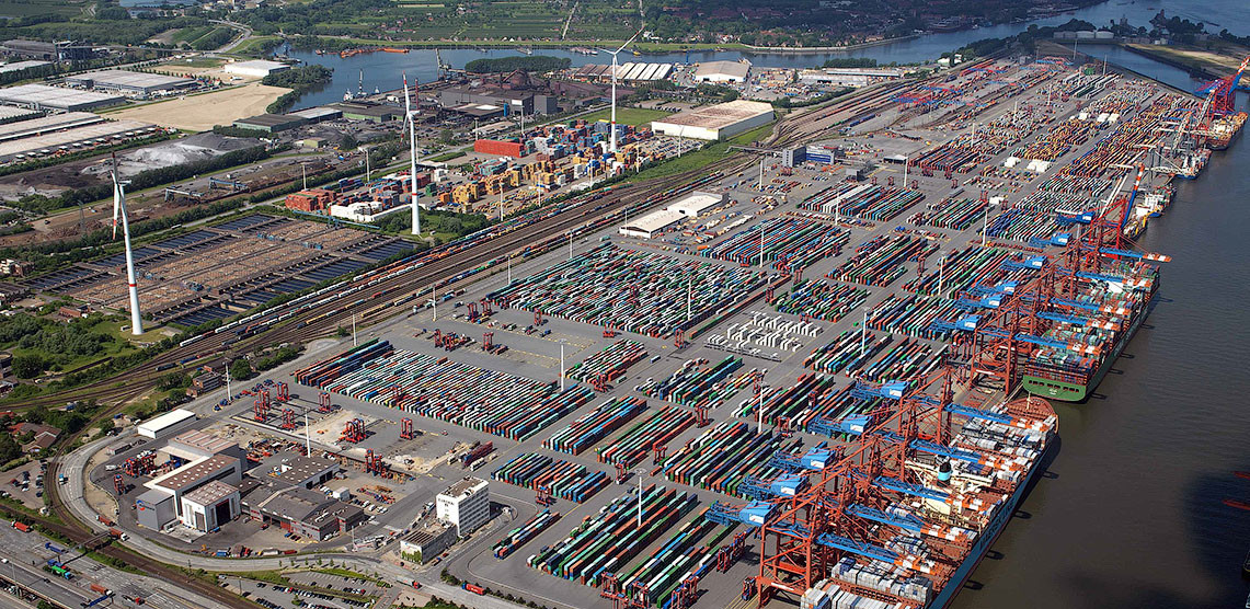 HHLA Terminal Burchardkai is the largest and oldest facility for container handling in the Port of Hamburg and today the terminal handles one third of all containers in the Port of Hamburg. 25 container gantry cranes work on thousands of ships that tie up annually; many hundreds of rail cars are loaded and discharged every day.
